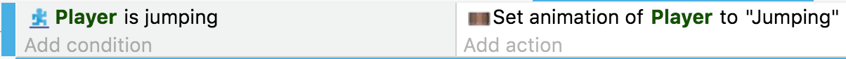 Ahora agreguemos la acción para cambiar la animación del Jugador cuando el personaje está saltando. Haga clic en Agregar acción.