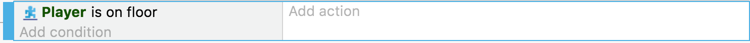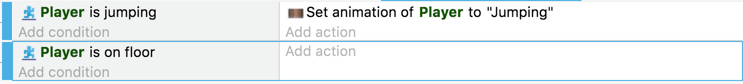 Pero cuando el Reproductor está de vuelta en el piso, puede ver que la animación no está configurada de nuevo en la animación Inactiva. ¡Esto es simplemente porque nunca le dijimos a GDevelop que lo hiciera! Agreguemos otro evento para arreglar esto.