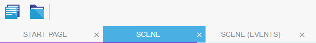 Pour basculer entre l'éditeur de scène et l'éditeur d'événements vous pouvez utiliser ces onglets en haut
