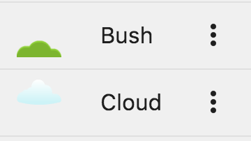Vous pouvez maintenant changer le z order des buissons et des nuages en leur donnant des valeurs négatives de manière à ce que le personnage du joueur (dont le z vaut 1 puisque c'est le premier objet placé sur la scène) soit toujours affiché devant les autres objets.