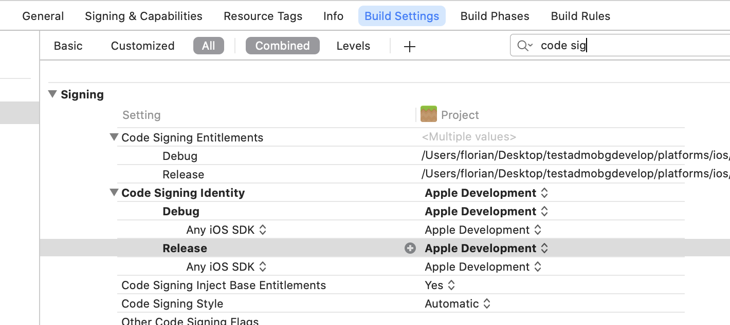 Note that you might have to change the code signing in the Build Settings: