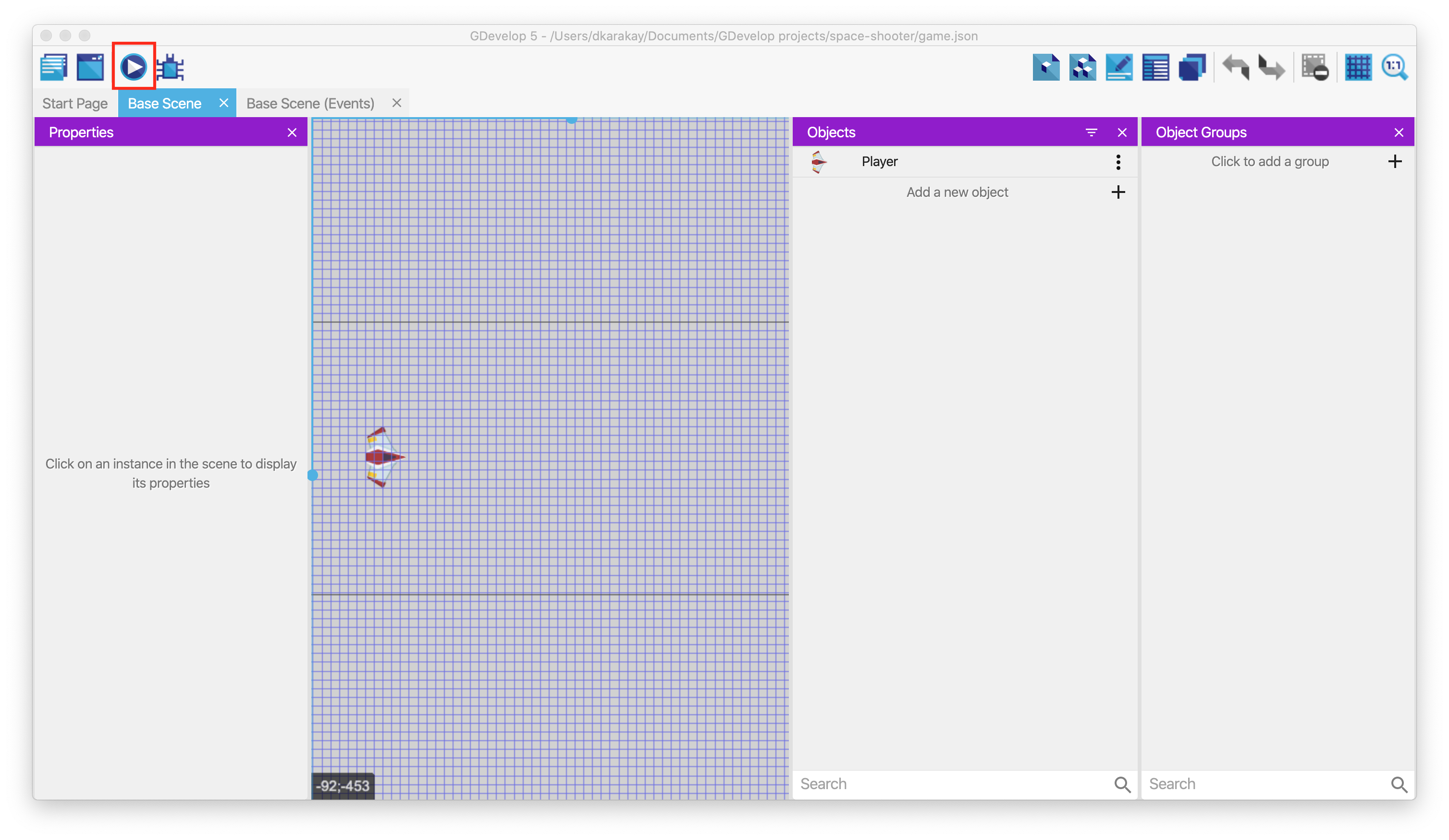 Finally, we can test our game by clicking the "Run" button on the upper left.