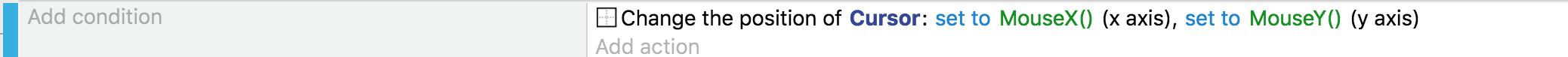 「カーソル」として使うオブジェクトは、Z オーダーを他のどれよりも上にするか、または他とレイヤーを分けてしまうといいでしょう。後者の場合は、MouseX と MouseY の引数にレイヤー名を渡します。たとえばレイヤー名が「user interface」であれば、MouseX("user interface")、MouseY("user interface") とします。