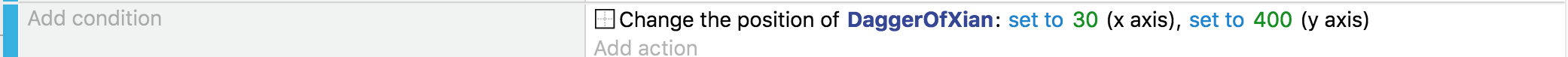 時にはオブジェクトを徐々に移動したりアニメーションさせる代わりに、オブジェクトの位置をパッと一瞬で変更したいことがあります。そんなときは、アクションを使ってオブジェクトの位置(X 座標と Y 座標)を変更します。